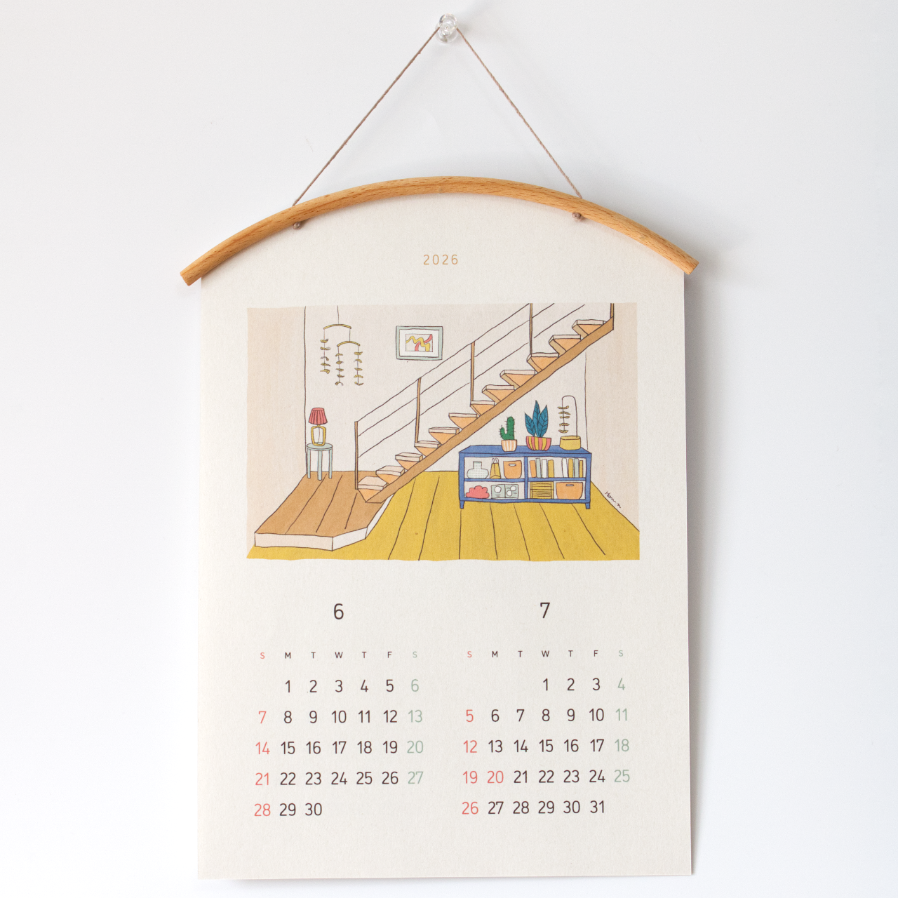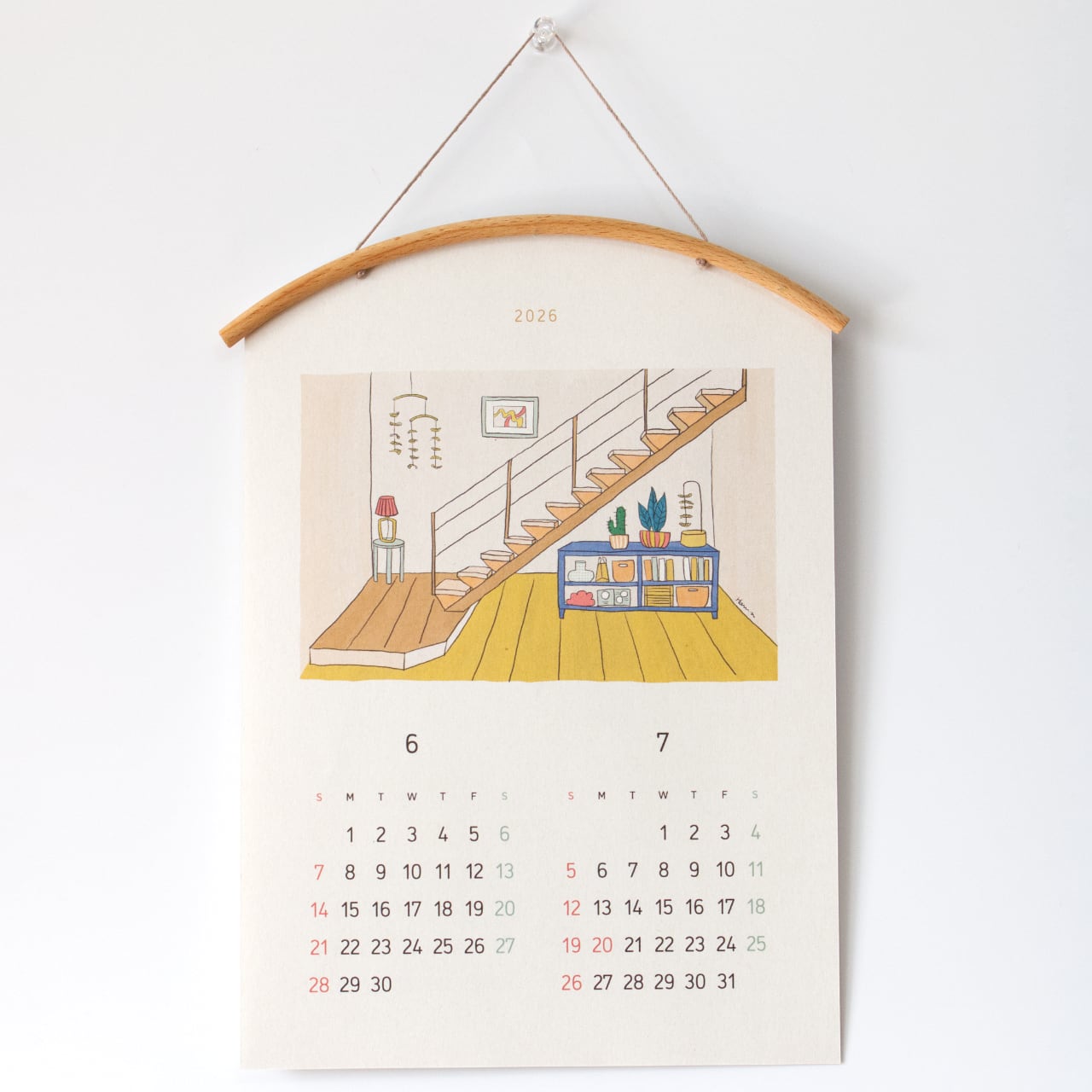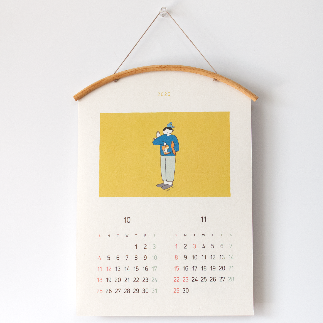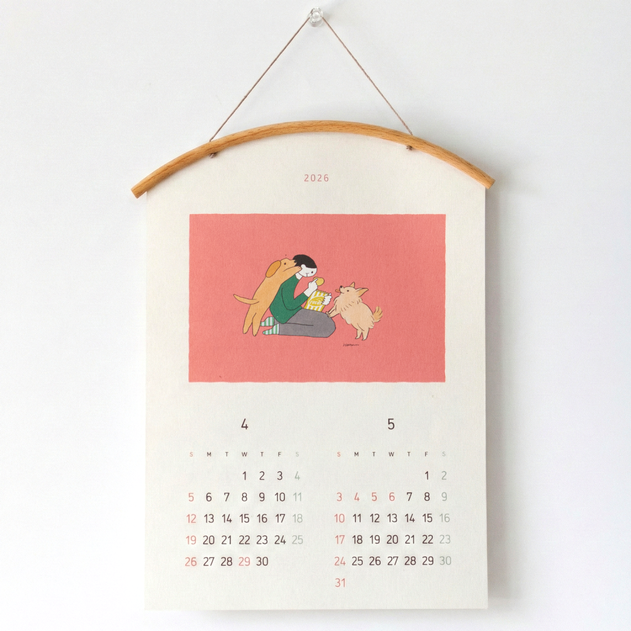 【4月始まり】木のハンガー付きカレンダー 2026 Flying Potachi A4壁掛け 北欧