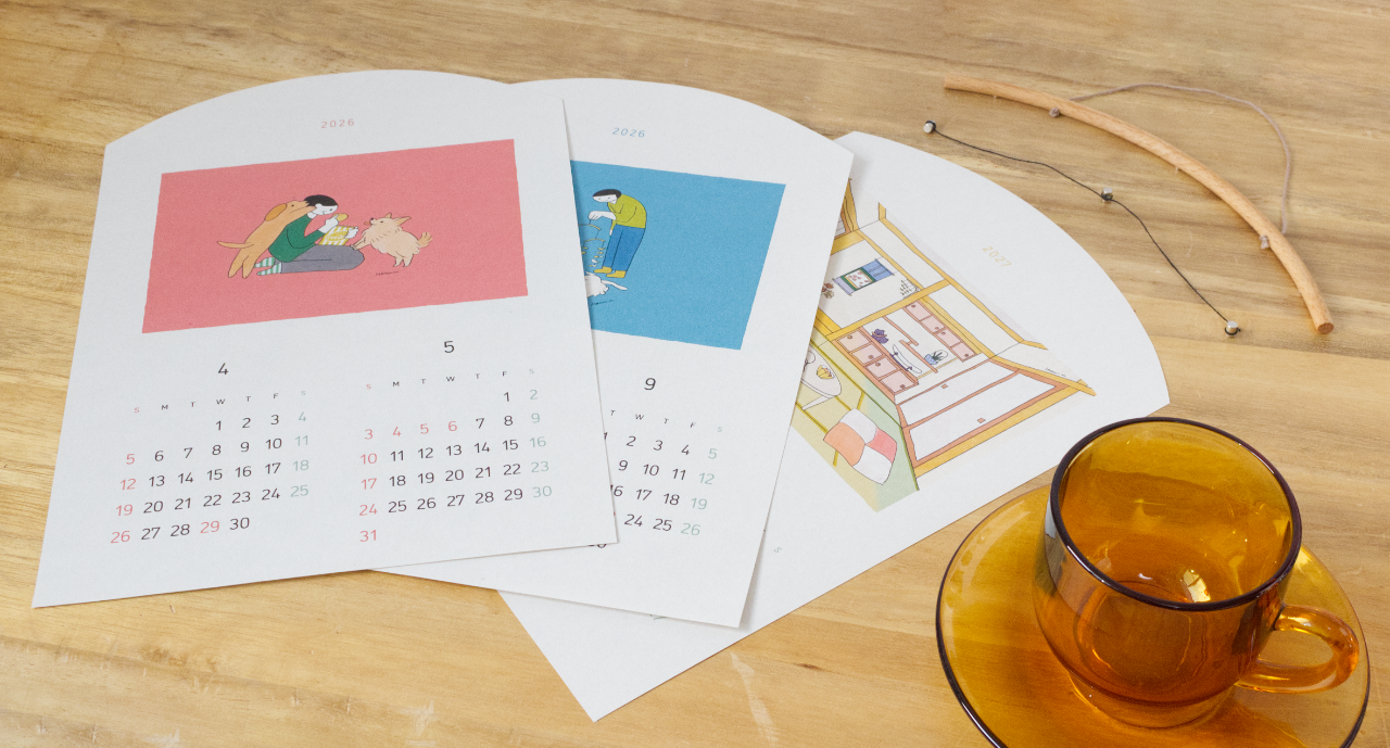 ■パッケージ内容:カレンダー1式(表紙1枚+カレンダー2枚(3ヶ月両面)+固定ハンガー+マグネット)