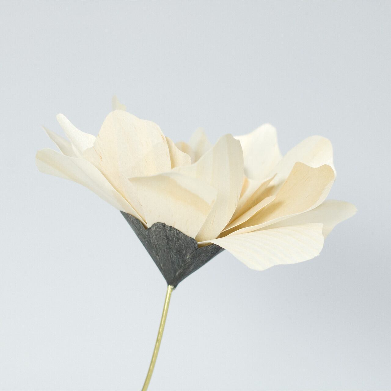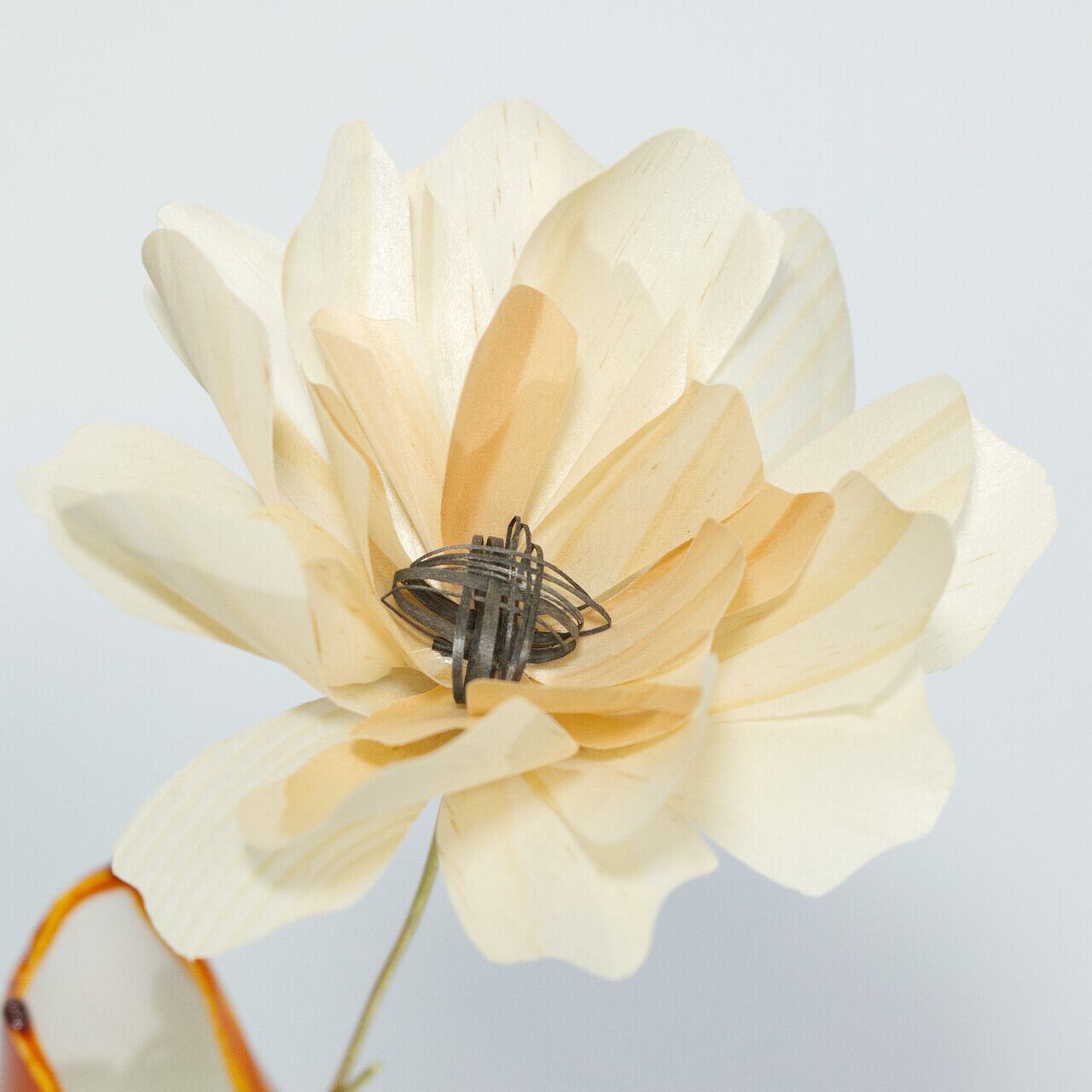 使用している木材は、昔から大切にされてきた「経木」。その薄さとしなやかさ、木目が作る美しいグラデーションが、花びらのひとひらひとひらに表れています。