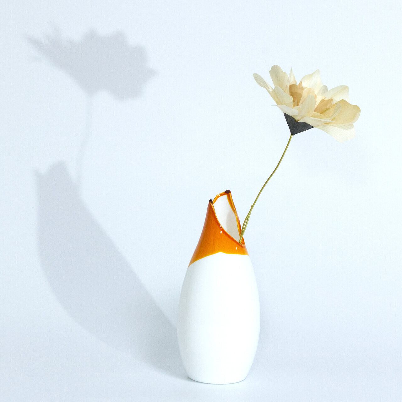 オリジナルの花瓶も別売りで販売しています。ガラスビンは既成のビンの口を割って塗装しています。すべて異なる、個性的な形状の割口の美しさを楽しんでいただけます。