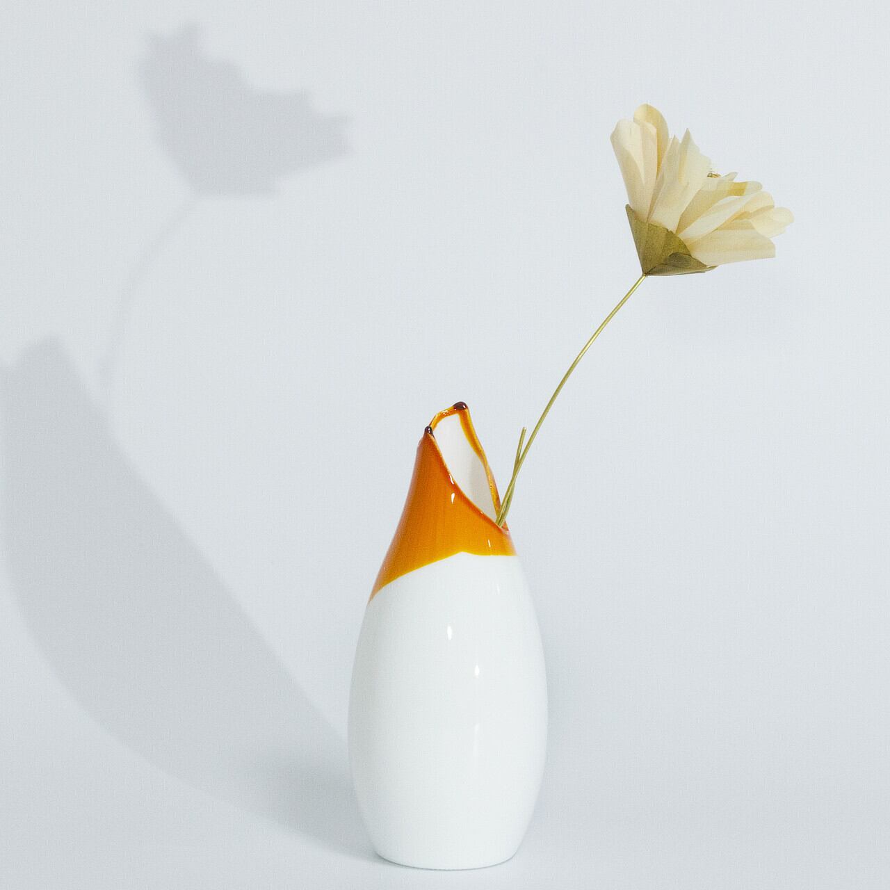 オリジナルの花瓶も別売りで販売しています。ガラスビンは既成のビンの口を割って塗装しています。すべて異なる、個性的な形状の割口の美しさを楽しんでいただけます。