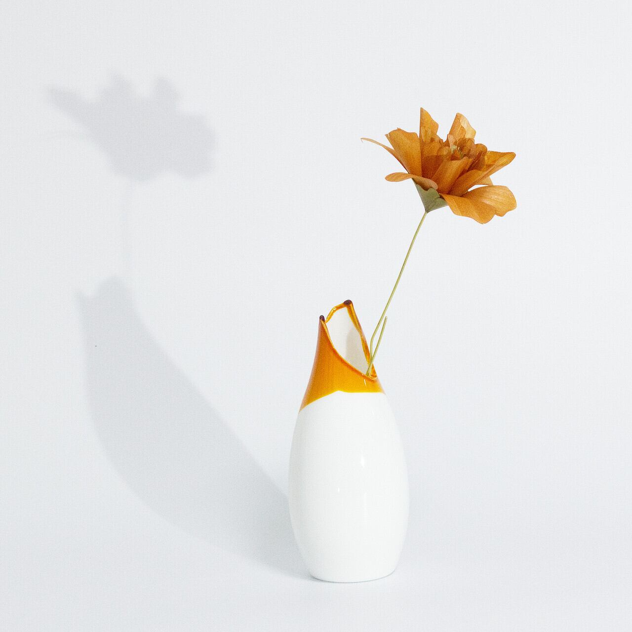 オリジナルの花瓶も別売りで販売しています。ガラスビンは既成のビンの口を割って塗装しています。すべて異なる、個性的な形状の割口の美しさを楽しんでいただけます。