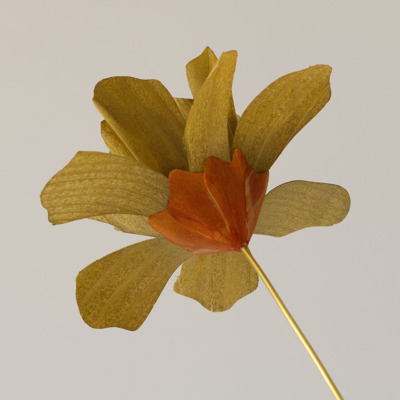 使用している木材は、昔から大切にされてきた「経木」。その薄さとしなやかさ、木目が作る美しいグラデーションが、花びらのひとひらひとひらに表れています。