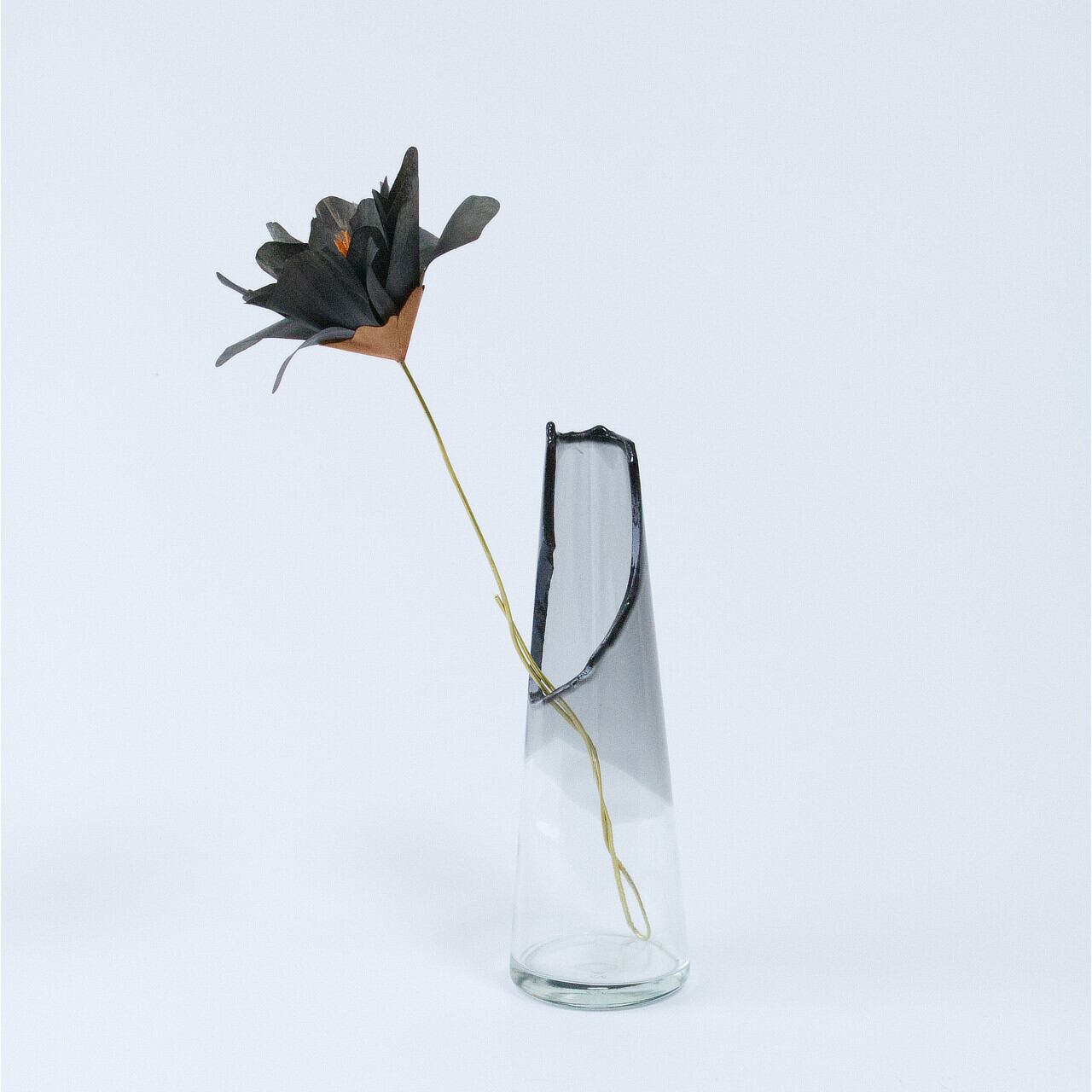 オリジナルの花瓶も別売りで販売しています。ガラスビンは既成のビンの口を割って塗装しています。すべて異なる、個性的な形状の割口の美しさを楽しんでいただけます。