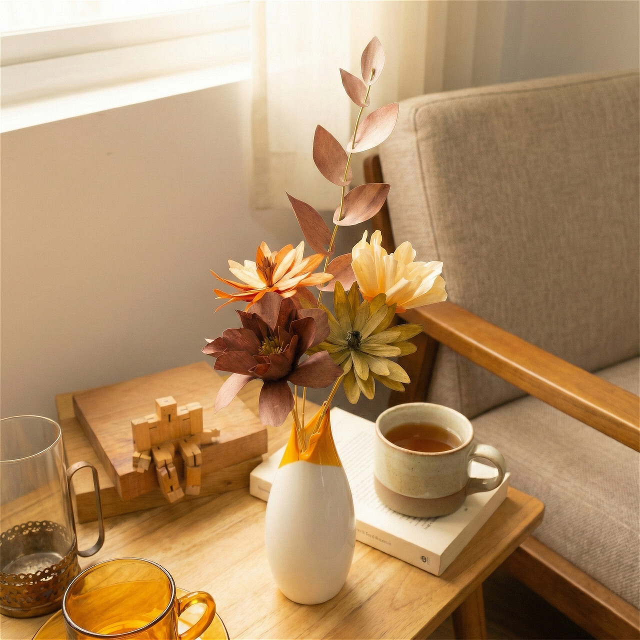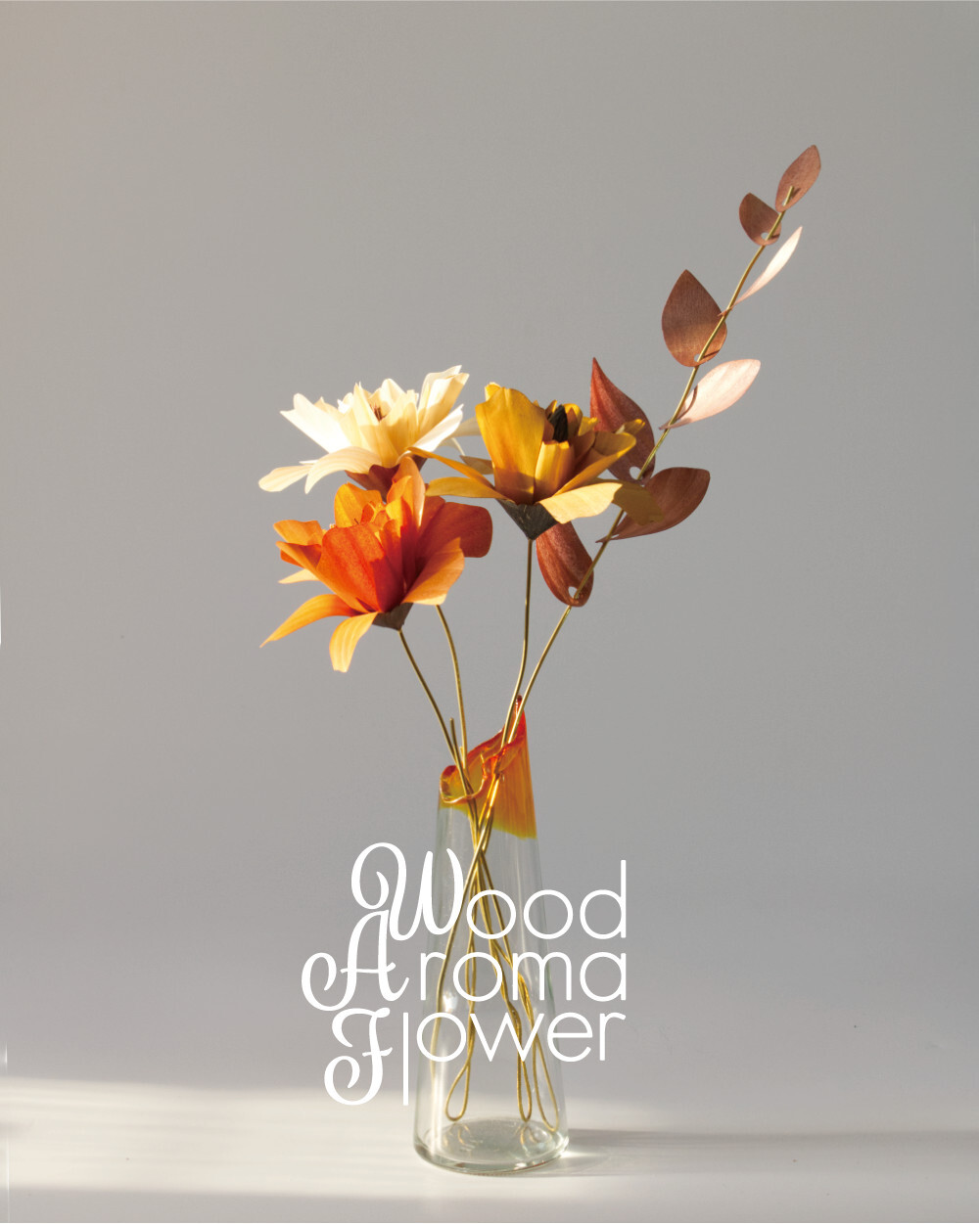 kitamichiが提案する「Wood Aroma Flower4輪」と、空間に動きを出す「Wood Leaf Branch(枝)」を組み合わせた、スタイリングセットです。