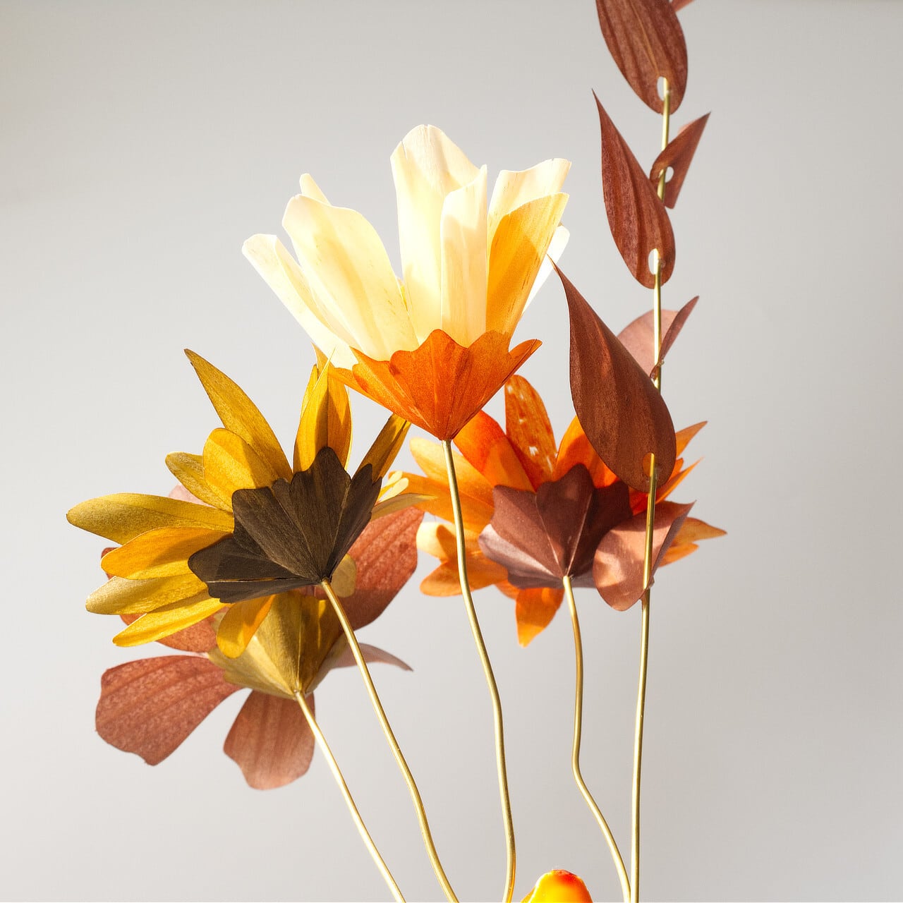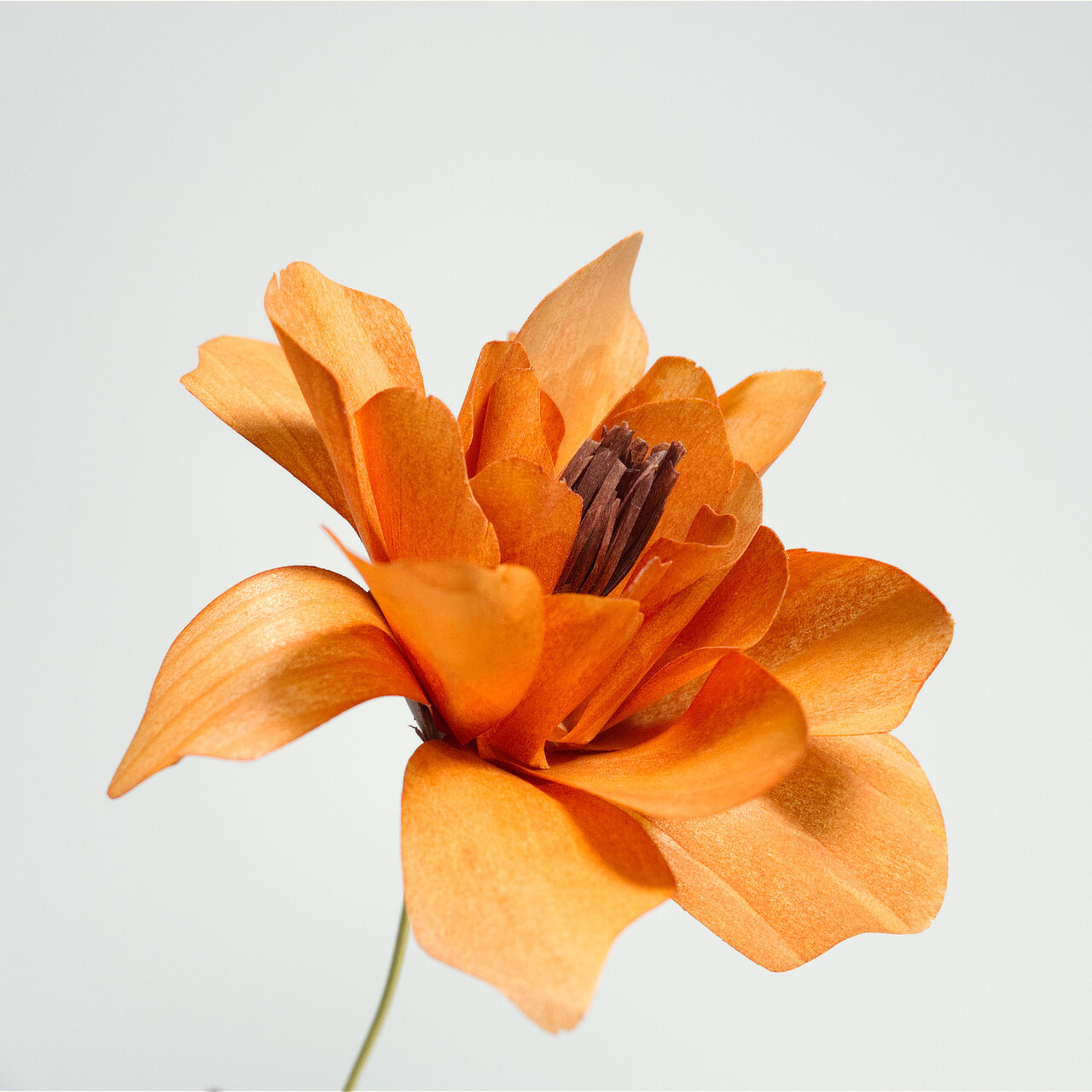 使用している木材は、昔から大切にされてきた「経木」。その薄さとしなやかさ、木目が作る美しいグラデーションが、花びらのひとひらひとひらに表れています。