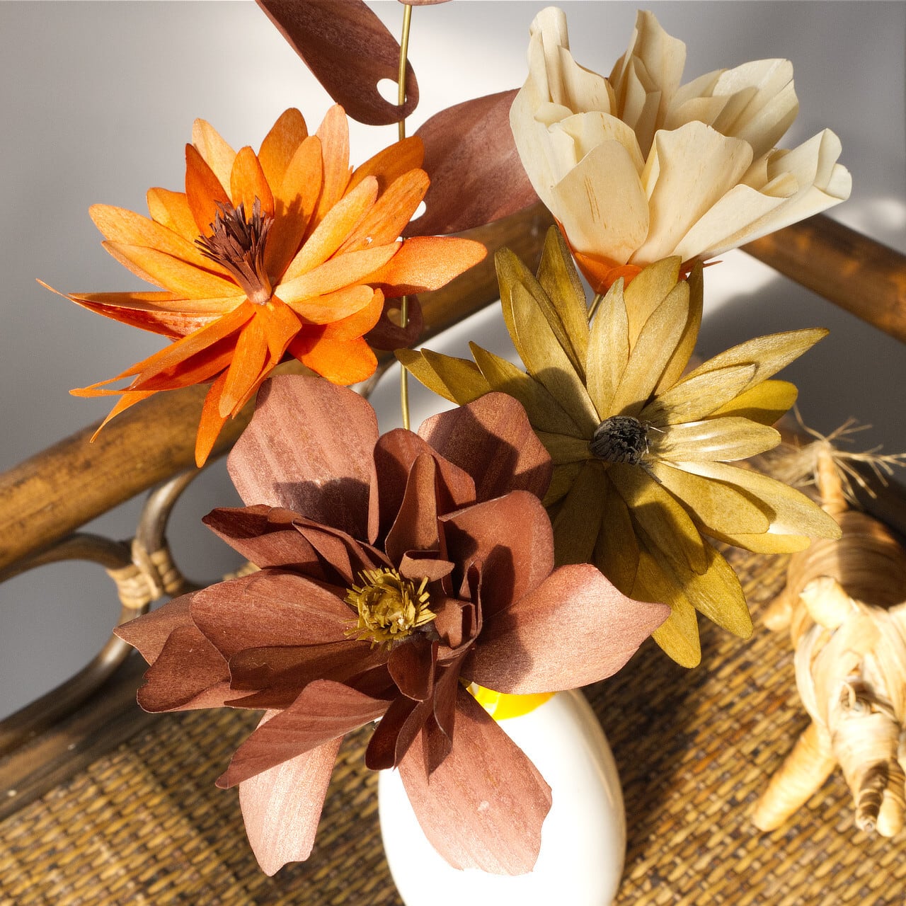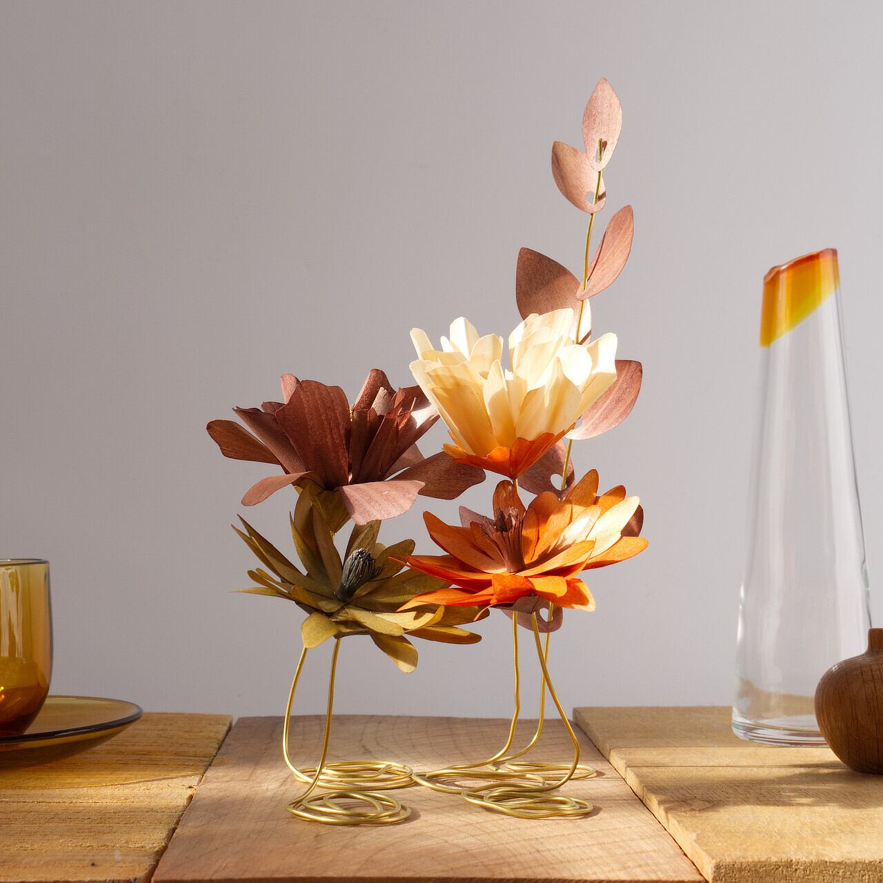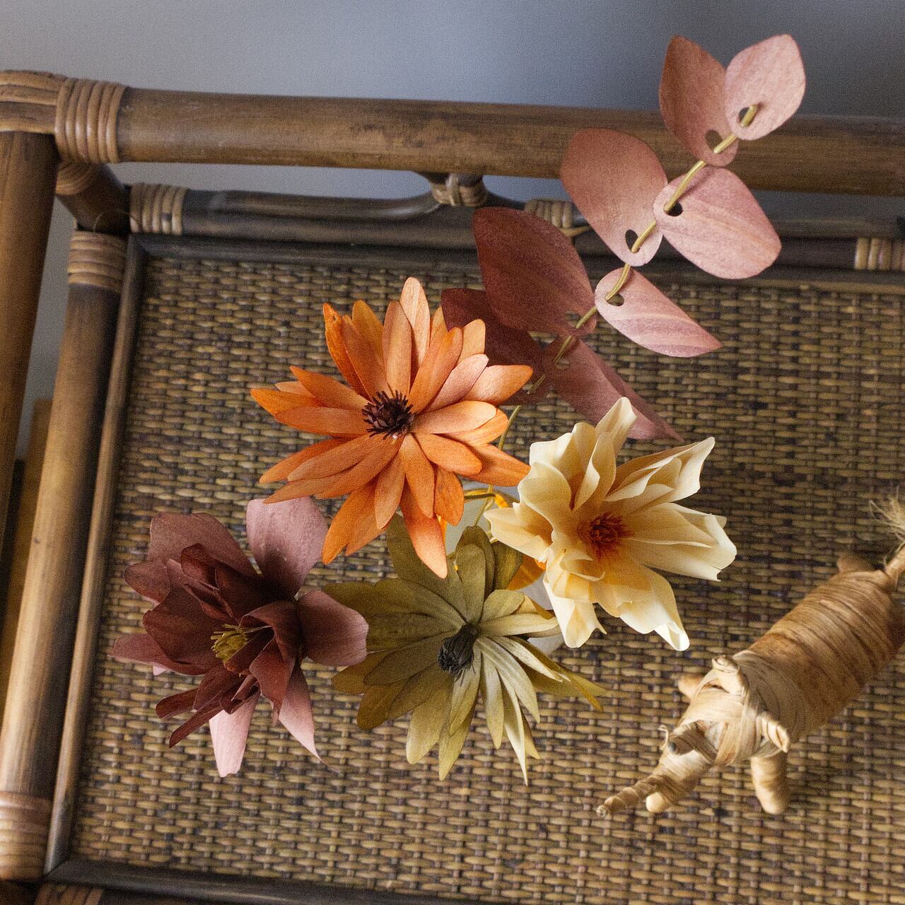 プラスチックの花では感じることのできない木材ならではのあたたかみと優しさ。