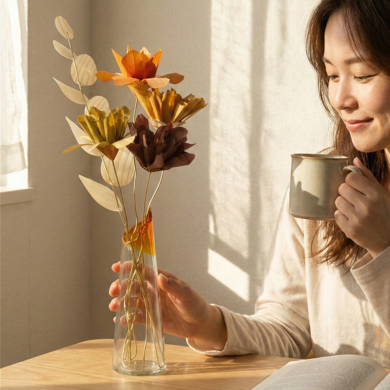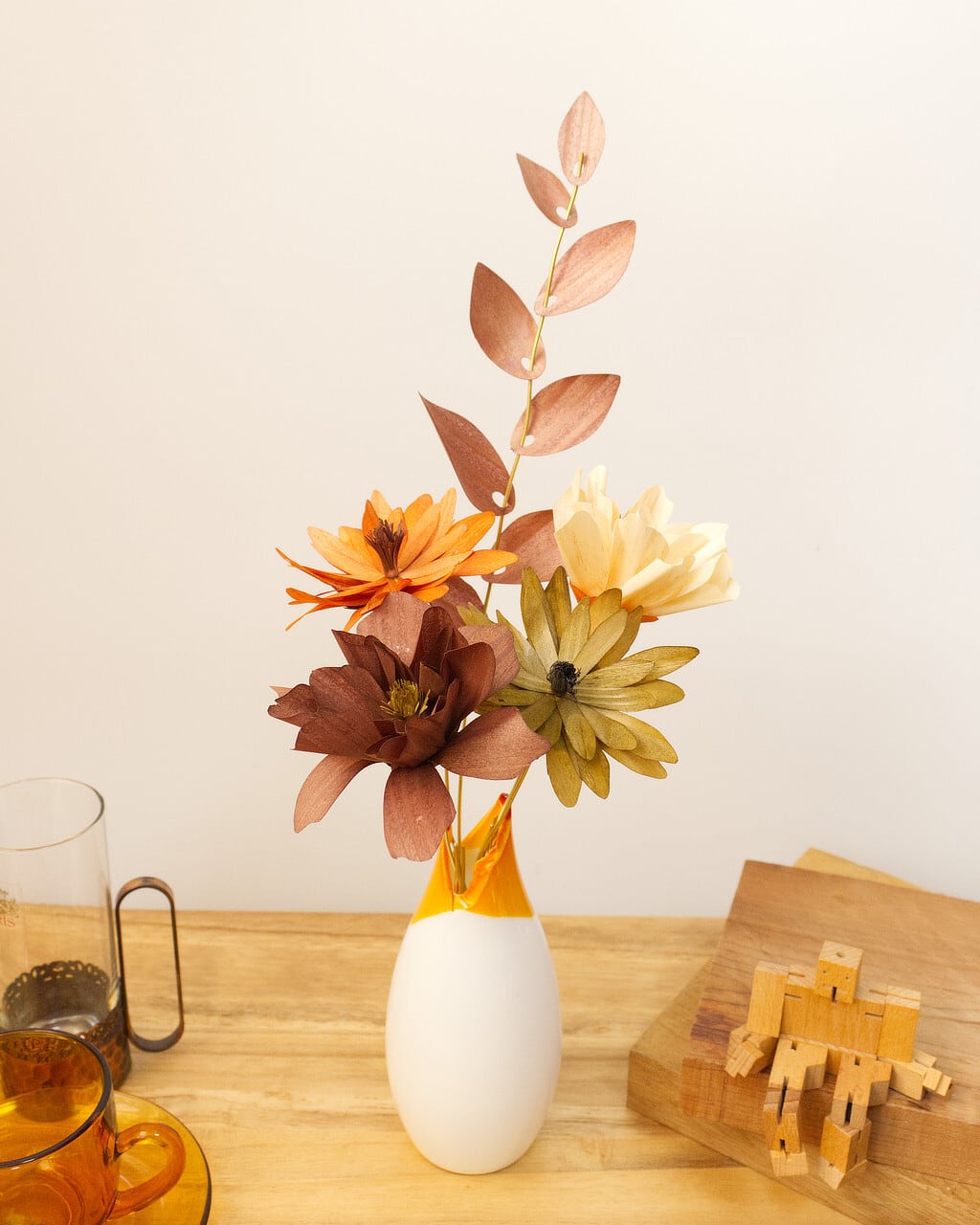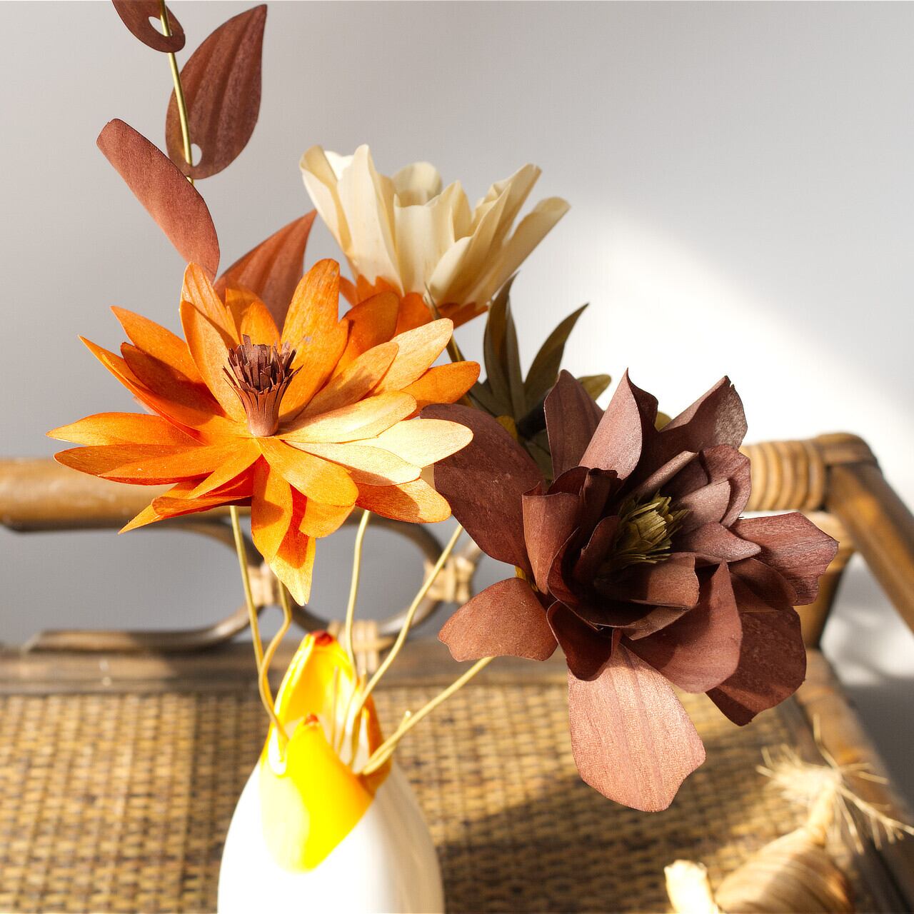 プラスチックの花では感じることのできない木材ならではのあたたかみと優しさ。